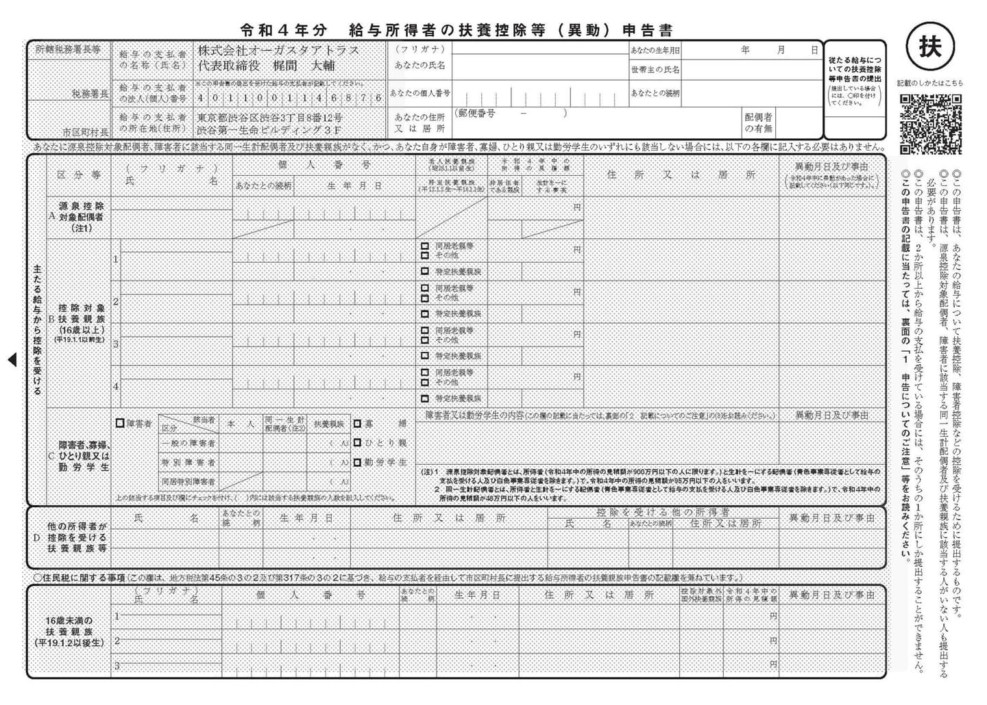 数ある派遣会社の中から(株)オーガスタアトラスをお選びいただき誠にありがとうございます。扶養控除申告書の記入に際し、作成方法と送付先等をご説明いたします。※この申告書は2か所以上から給与の支払いを受けている場合には、そのうち1か所にしか提出することができません。